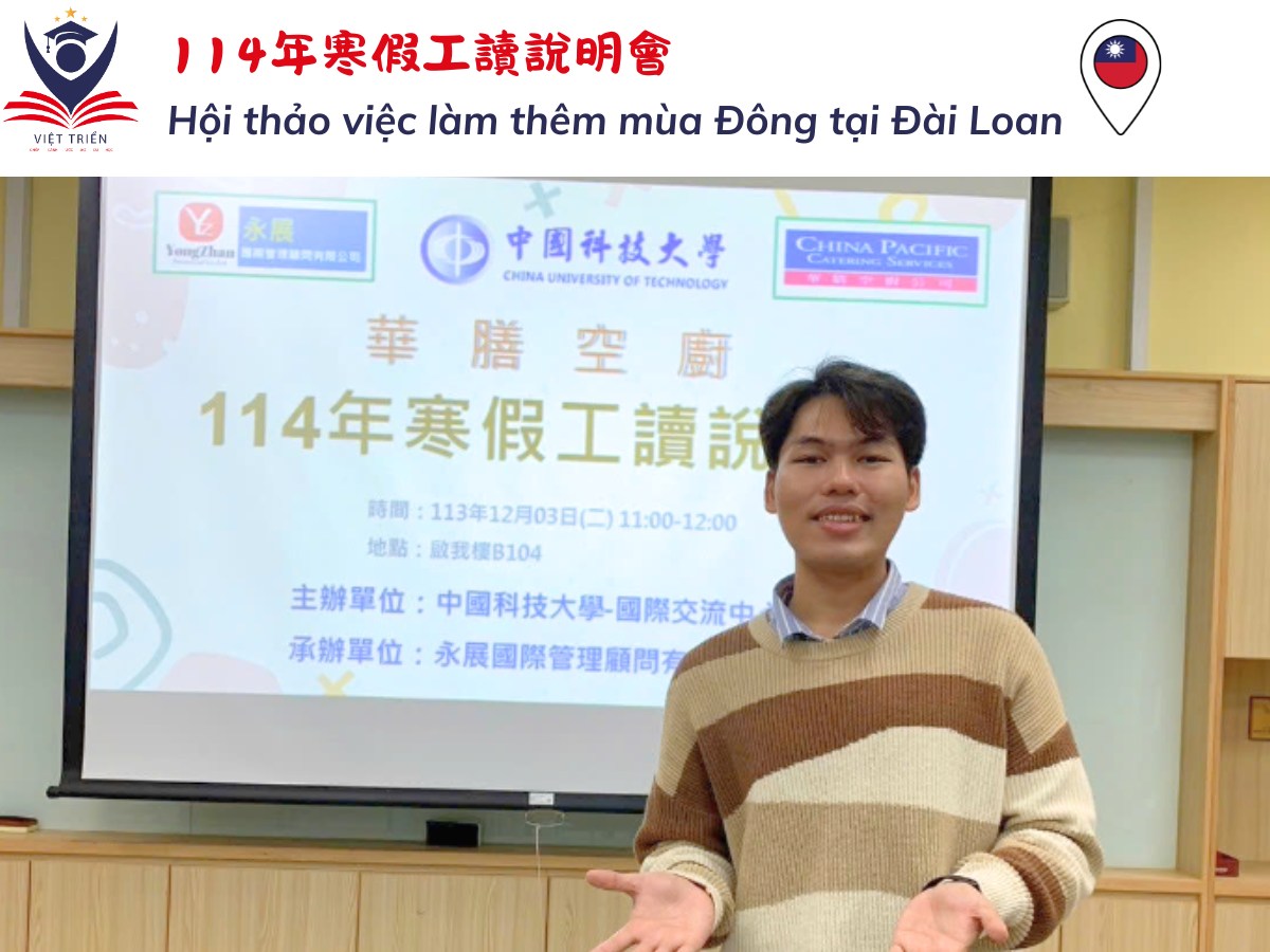 Trong bối cảnh nhu cầu việc làm bán thời gian tăng cao của du học sinh Việt Nam tại Đài Loan, Việt Triển đã tích cực tham gia Hội thảo việc làm mùa đông, một sự kiện quan trọng nhằm kết nối sinh viên với các cơ hội việc làm phù hợp.